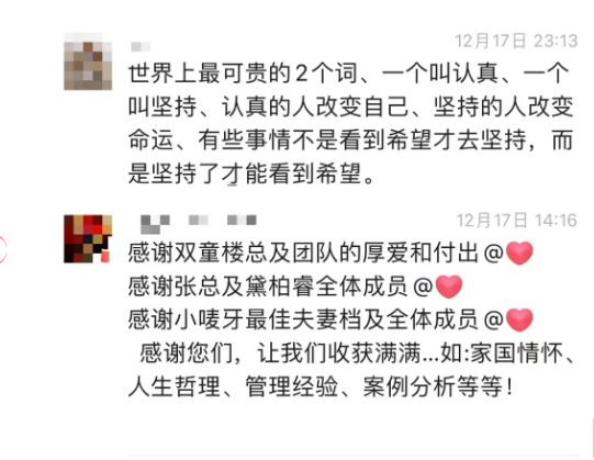 就在今年,他報(bào)名參加了雙童的《自主制創(chuàng)業(yè)裂變營(yíng)》,整個(gè)課程無(wú)論是理論原理、還是落地實(shí)操,都讓他堅(jiān)信這是一套能夠真正解決當(dāng)前企業(yè)問題的科學(xué)機(jī)制。所以在課程結(jié)束后,創(chuàng)始人謝彥濤當(dāng)場(chǎng)決定帶領(lǐng)企業(yè)所有核心高管參加下一期的課程學(xué)習(xí),同時(shí)還報(bào)名了【隱形冠軍樓仲平思享薈】,正式成為樓仲平老師的“弟子”!