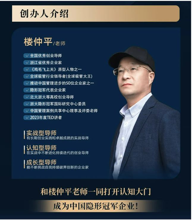 【隱形冠軍樓仲平思享薈】是在原【樓仲平隱形冠軍私享會(huì)】上進(jìn)行的全新升級(jí),旨在為更多中小民營(yíng)企業(yè)家傳播商業(yè)哲科思維、共享經(jīng)營(yíng)管理智慧、薈集優(yōu)質(zhì)資源圈層。也是樓總唯一一個(gè)全面系統(tǒng)交付46年創(chuàng)業(yè)歷程的經(jīng)驗(yàn)總結(jié)和思維模型的課程。全年6期課程,樓老師24天深度陪伴,從戰(zhàn)略到組織,從創(chuàng)新思維到企業(yè)家精神,幫助你的企業(yè)全方位升級(jí)。