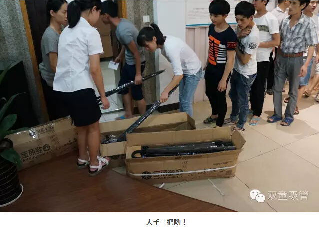 團隊里的所有伙伴團結(jié)互助,有效溝通,這個團隊才能成功。吸管妞也希望大家可以在“雙童”這個優(yōu)秀的團隊里能夠有更美好的未來!學(xué)習(xí)會進行到最后,還有驚喜相送呢!原來公司特地定制了“雙童”企業(yè)傘,分發(fā)給每一位員工,瞧瞧大家多開心呀!