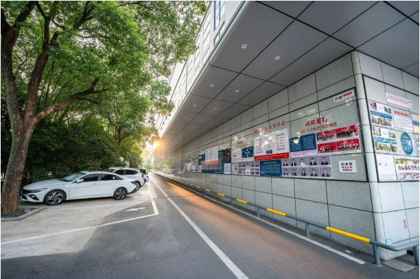 雙童的百米文化長(zhǎng)廊對(duì)面正是一片樹(shù)林和停車場(chǎng),只需要設(shè)計(jì)一個(gè)懸空走廊,既保住了原有的樹(shù)木,還留住了停車場(chǎng)地,又可以有一塊新的員工休閑區(qū),三全其美!