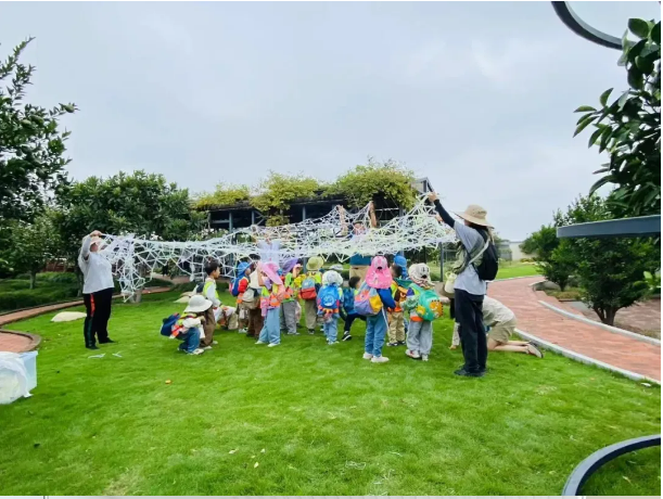3)其他類型活動:雙童提供場地,由學生的老師自行準備小游戲,也是一個不錯的選擇。比如為一棵樹做個“吸管風鈴”;也可以在如茵的草地上共同協(xié)作,編織一張“吸管網(wǎng)”!
