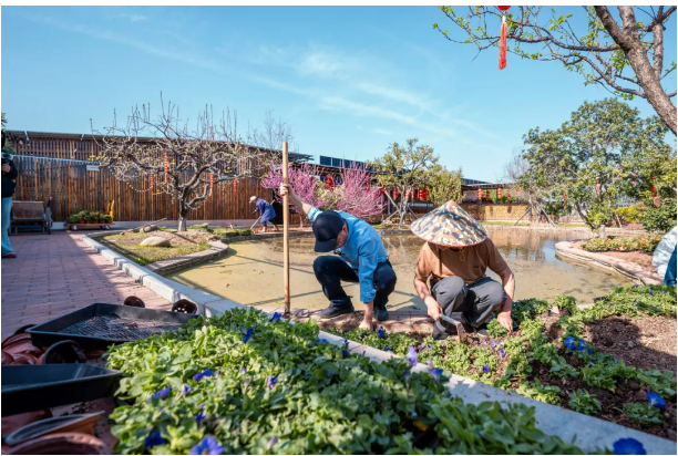 當(dāng)天下午,樓仲平就帶領(lǐng)著一群園丁們熱火朝天地忙碌起來。經(jīng)過一番精心改造,一座宛如莫奈花園般的美麗景觀“橫空出世”!