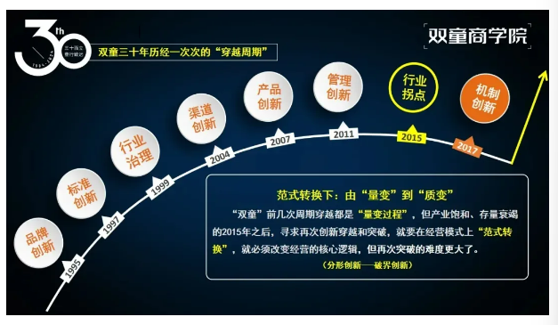 從成本角度看,包括人力資源成本在內(nèi),生產(chǎn)要素成本在持續(xù)攀升。傳統(tǒng)制造業(yè)要在高成本區(qū)域持續(xù)經(jīng)營,原有發(fā)展模式和路徑幾乎無效。走出舒適區(qū)、打破路徑依賴,已成雙童當務之急。雙童當時更多思考的是如何開源節(jié)流、降低成本,如何撬動員工自主創(chuàng)造的積極性,如何打破企業(yè)天花板。