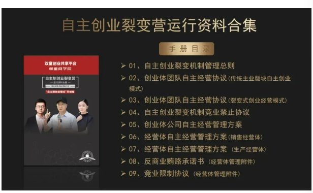 如果你也想讓企業(yè)能夠留住優(yōu)秀人才、激發(fā)員工活力、實現(xiàn)共同富裕,別猶豫,你需要【自主創(chuàng)業(yè)裂變營】賦能!