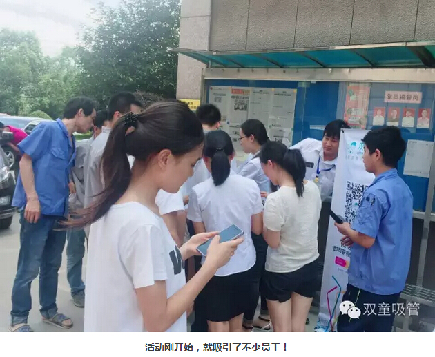 這不,不少員工說:“咱公司的微信公眾號早關(guān)注啦,每天的企業(yè)動態(tài)我們都會看呢!”完成任務(wù)的員工們?nèi)耸忠淮鼨幟蕷馀菟?,還送一根“雙童”藝術(shù)吸管哦!看看,大家臉上都洋溢著幸福的笑容!