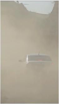 因?yàn)樾旭偟?/span>道路開(kāi)始從柏油路變成坎坷泥濘的土路,一路上顛簸崎嶇不說(shuō),中間有一段路程,更是黃沙漫天、塵土飛揚(yáng),能見(jiàn)度幾乎為“0”!車轍印剛壓出半尺深,轉(zhuǎn)眼就被山風(fēng)卷著砂石填平,如果此時(shí)下車步行的話,估計(jì)沒(méi)走幾步路,“膝蓋骨里都得灌進(jìn)二兩黃土”來(lái)!
