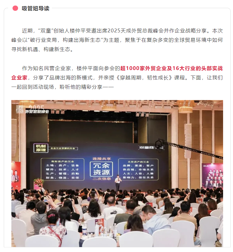 @樓仲平 受邀2025天成外貿(mào)總裁峰會!為超1000位創(chuàng)業(yè)者分享冠軍企業(yè)的“韌性成長”之道!