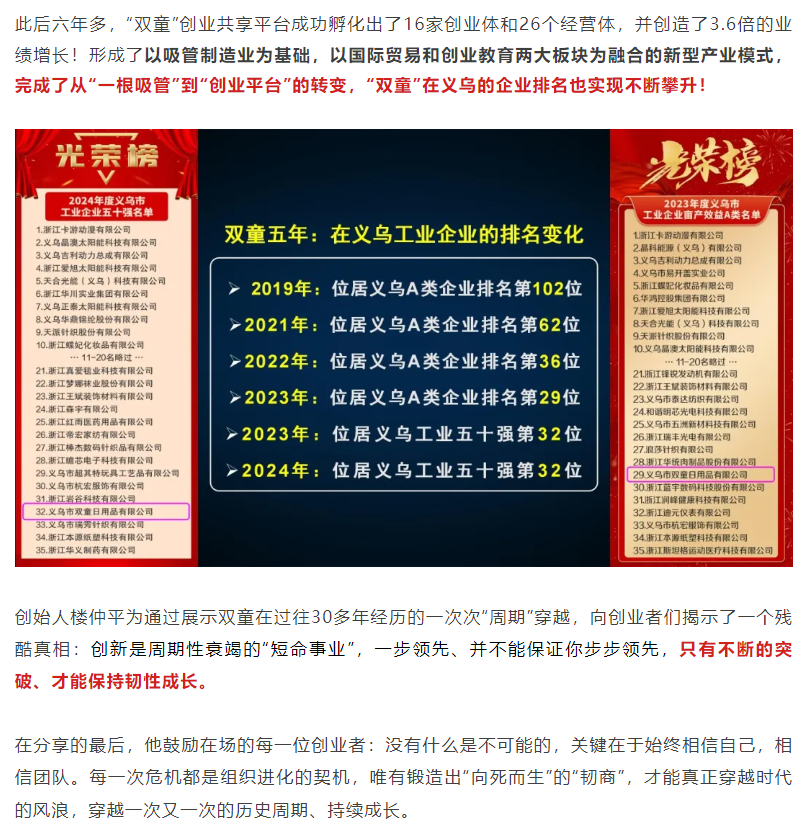 下一篇 : 重磅報道!@樓仲平 登上《浙江日報》頭版“創(chuàng)業(yè)者新傳·常青樹”專訪!全面解析雙童穿越周期的經(jīng)營哲學(xué)! 〉
