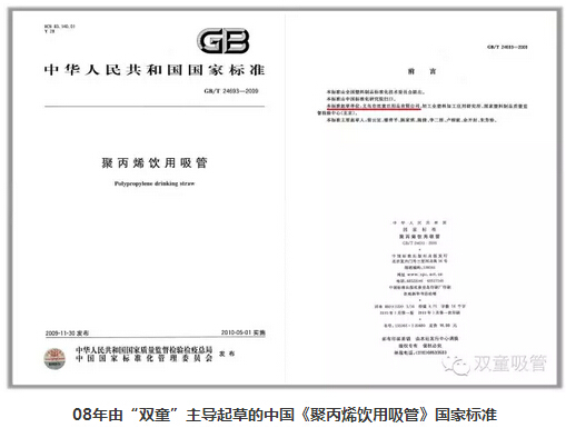 2012年7月24日,由國家塑料制品標準化技術(shù)委員會和“雙童”公司召集國內(nèi)吸管行業(yè)的十多家生產(chǎn)企業(yè),在義烏市天恒酒店召開ISO國際標準國內(nèi)分組研討會。會上集中討論了由“雙童”提交的吸管ISO國際標準草案初稿,決定采用屬地原則的有利條件,在中國《聚丙烯飲用吸管》國家標準的基礎(chǔ)上進行ISO國際標準的條文延伸和編輯,以最大程度上有利于中國吸管行業(yè)的健康發(fā)展。
