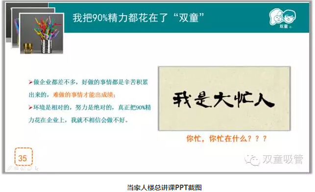 這樣一位企業(yè)主,在外界看來(lái),有些“一根筋”和“不通人情”,但在經(jīng)營(yíng)“雙童”二十多年的時(shí)間里,他不沽名釣譽(yù),不貪大求全,懂得了放棄,學(xué)會(huì)了享受寂寞和孤獨(dú),并把“雙童”做到了全球吸管行業(yè)領(lǐng)導(dǎo)者!