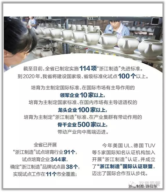 2014年底,浙江在全國(guó)率先以標(biāo)準(zhǔn)和認(rèn)證為手段打造首個(gè)區(qū)域性公共品牌——“浙江制造”品牌。“浙江制造”標(biāo)準(zhǔn)比國(guó)家及行業(yè)標(biāo)準(zhǔn)要求要高,基本達(dá)到國(guó)際先進(jìn)、國(guó)內(nèi)一流水平。通過(guò)制定先進(jìn)標(biāo)準(zhǔn),越來(lái)越多的企業(yè)占領(lǐng)標(biāo)準(zhǔn)高地,獲得更多的市場(chǎng)話(huà)語(yǔ)權(quán)。近日,《浙江日?qǐng)?bào)》也發(fā)布了一篇《浙江高標(biāo)準(zhǔn),制造好品質(zhì)》的報(bào)道。