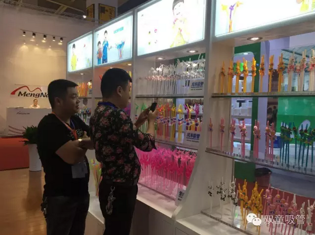 經(jīng)過雙童經(jīng)過的客商基本都會留下腳步。原來是雙童展位的正中央掛著一臺大尺寸的電視機(jī),不間斷的滾動播放當(dāng)家人接受的各類節(jié)目采訪,以及各類媒體對雙童吸管進(jìn)行報道的視頻!看來咱們當(dāng)家人的魅力還真是大呀!