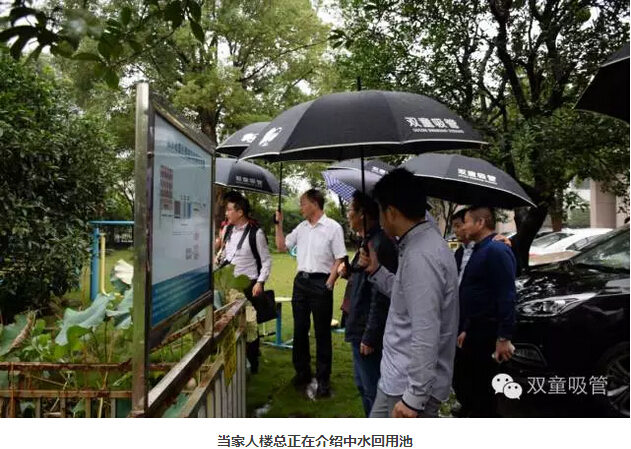 參觀的第一站,是我們的節(jié)能降耗系統(tǒng)。當(dāng)家人樓總向大家詳盡地講述了我們的中水回用系統(tǒng)、雨水收集系統(tǒng)、垃圾分類(lèi)系統(tǒng)等各個(gè)設(shè)施的運(yùn)行原理。眾人對(duì)“雙童”這種生態(tài)循環(huán)、為社會(huì)節(jié)約資源的做法點(diǎn)了一個(gè)大大的贊,更對(duì)樓總多年前能有這樣的理念十分敬佩!