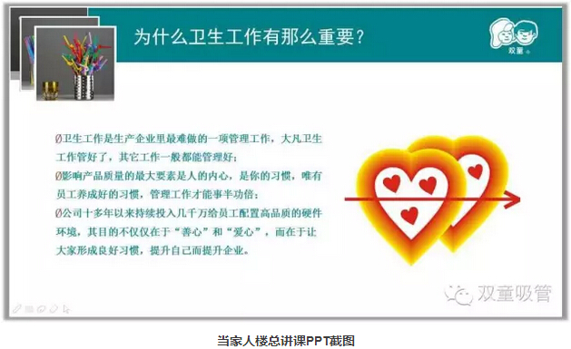 這不,一開(kāi)場(chǎng)當(dāng)家人就讓妞發(fā)起了紅包福利,在看到“雙童”與一般企業(yè)的餐廳、寢室等硬件的對(duì)比之后,互動(dòng)真是停不下來(lái)啦!一樣工資的情況下,大家愿意在哪個(gè)工廠上班?要維持良好的衛(wèi)生秩序你覺(jué)得要形成什么樣的團(tuán)隊(duì)?