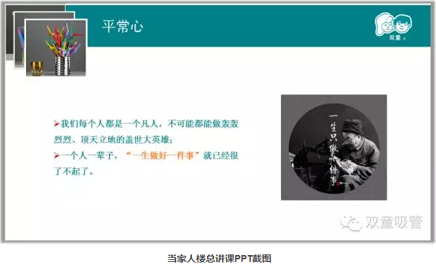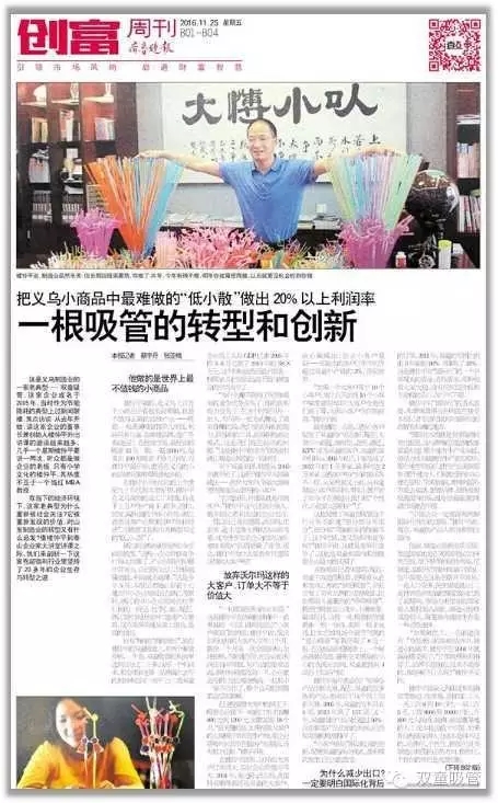 這是義烏制造業(yè)的一家老典型——雙童吸管,這家企業(yè)成名于2005年,當(dāng)時(shí)作為節(jié)能降耗的典型上過新聞聯(lián)播、焦點(diǎn)訪談。從去年開始,請(qǐng)這家企業(yè)的董事長(zhǎng)兼創(chuàng)始人樓仲平外出講課的邀請(qǐng)?jiān)絹碓蕉?/span>,幾乎一個(gè)星期樓仲平要講一兩次,聽眾都是做企業(yè)的老板。只有小學(xué)文化的樓仲平,其熱度不亞于一個(gè)當(dāng)紅MBA教授。
