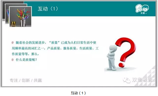 這不一開場的送紅包互動,不少童鞋都輕松斬獲紅包!質量到底是什么呢?話題一拋出,童鞋們的答案也是很多呢!質量包括了環(huán)境質量、生活質量和服務質量等等,質量是指讓消費者滿意的產品品質…… 看來大家對質量都有著很深的理解呢!