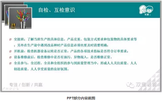 好的質量怎么來?我們要秉承零缺陷原則和三不原則,第一次就把事情做好,避免產生不合格品。最后,我們的陳講師也鼓勵大家參與到質量管理當中,形成人人關注質量、人人創(chuàng)造質量、人人享受質量的良好氛圍!質量是用心做出來的,每個人都用心去做產品,我們生產出的產品才會更加精細!
