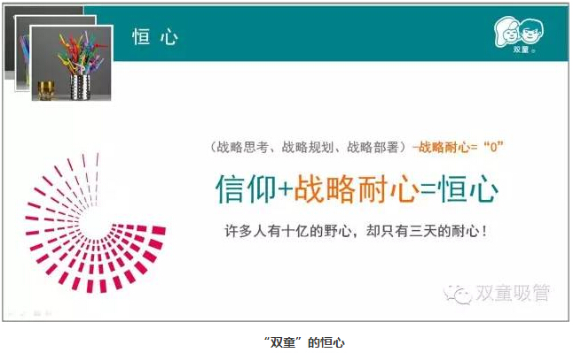 這家一次性筷子工廠和日本企業(yè)的綠色環(huán)保經(jīng)營(yíng)模式一直影響了我對(duì)企業(yè)和產(chǎn)品的經(jīng)營(yíng)思維,認(rèn)知到通過堅(jiān)持和創(chuàng)新完全可以改變企業(yè)的不變真理,從而影響了“雙童”在后續(xù)發(fā)展過程中始終堅(jiān)守在“一根吸管”上,并通過專注不輟、精進(jìn)創(chuàng)新、用心經(jīng)營(yíng)而形成了獨(dú)具特色的“雙童工匠思維”,使“雙童”逐漸擺脫了薄利多銷的粗放經(jīng)營(yíng),逐步形成了精細(xì)化管理、生態(tài)環(huán)保、與員工共成長(zhǎng)的可持續(xù)發(fā)展道路,從而徹底改變了世人對(duì)吸管行業(yè)的低、小、散、弱的傳統(tǒng)認(rèn)知。下面我就“雙童”二十多年逐漸形成的“匠人思維”做一個(gè)簡(jiǎn)單的總結(jié)和回顧: