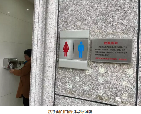 除此之外,衛(wèi)生間內(nèi)還有許多提示引導(dǎo)的標(biāo)示牌,每個配件都極為精致!每扇門上都會有“生產(chǎn)區(qū)域,嚴(yán)禁吸煙”的標(biāo)識,每個蹲位后面都有“便后請沖水、素養(yǎng)高低往往體現(xiàn)在關(guān)上門自己獨(dú)處之時”的溫馨提示,引導(dǎo)員工提升素質(zhì)。偷偷爆個料,所有標(biāo)識牌都是由當(dāng)家人樓總自己設(shè)計的呢!