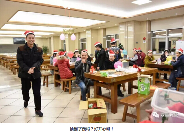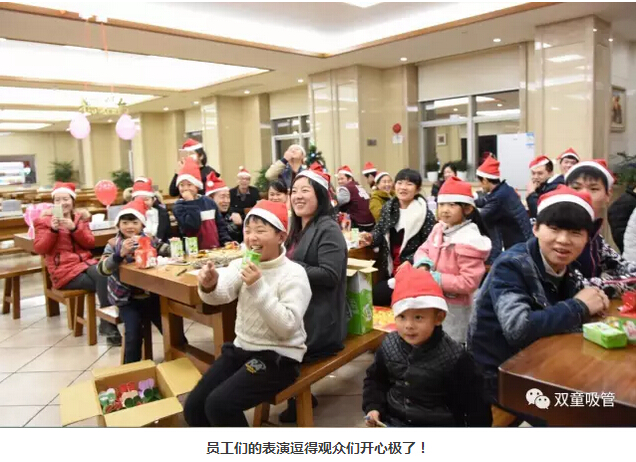 啥?圣誕老人來(lái)啦?就在平安夜,我們“雙童”員工餐廳迎來(lái)了一場(chǎng)別開(kāi)生面且溫暖十足的圣誕晚會(huì)暨12月份員工生日會(huì)!為什么說(shuō)是別開(kāi)生面?因?yàn)檫@是一場(chǎng)員工生日會(huì)與圣誕晚會(huì)合在一起舉辦的超規(guī)格晚會(huì),員工跟圣誕老人一起慶祝生日,夠不夠別開(kāi)生面?