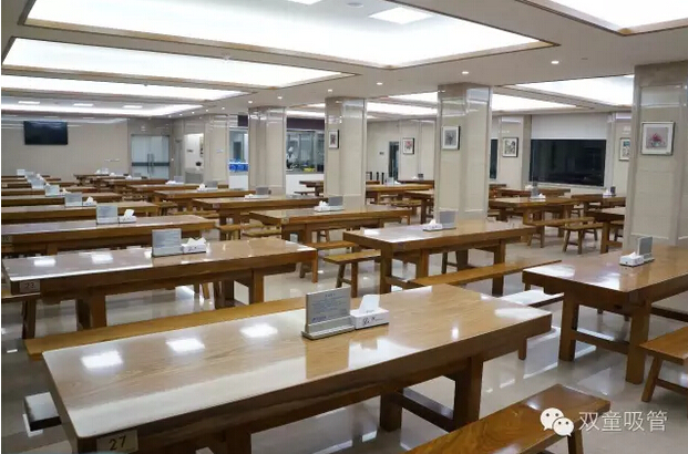 今年十月份,“雙童”的五星級員工餐廳全面改造完成。餐廳內(nèi)的設(shè)施都配備了最好的硬件,就拿桌子來說,員工餐廳的每一張桌子重達四五百斤,是木中之王的柚木定制而成,每一張就要15000元。