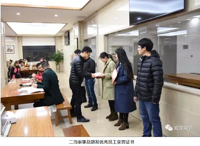 又到年底,我們“雙童”也要放假啦!在放假前,我們準(zhǔn)備了豐盛的年終大聚餐!在年底員工聚餐前,當(dāng)然要先開(kāi)個(gè)員工年終大會(huì),好好表彰一下過(guò)去一年來(lái)大家的辛勤努力!這不,下午四點(diǎn),我們舉行了春節(jié)前的最后一次集體員工大會(huì)。