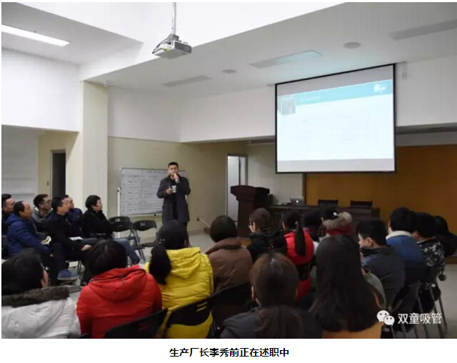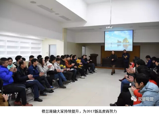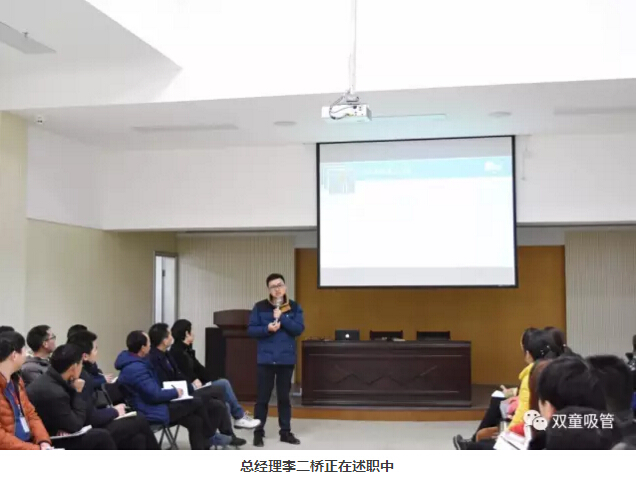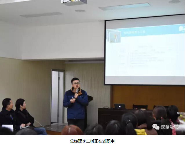 首先,由我們的總經(jīng)理李二橋代表經(jīng)營(yíng)層對(duì)2016年來(lái)的工作成果進(jìn)行匯報(bào),匯報(bào)涉及這一年來(lái)“雙童”銷(xiāo)售目標(biāo)的達(dá)成與否、“雙童”技術(shù)變革的成果改變、“雙童”制度標(biāo)準(zhǔn)化的建立總結(jié)、“雙童”基礎(chǔ)設(shè)施建設(shè)等等……