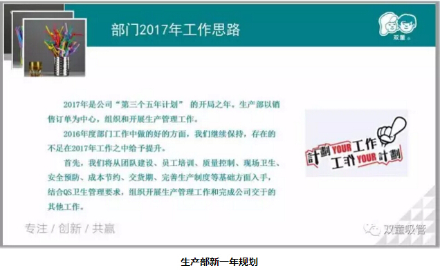 同時(shí)對(duì)過(guò)去一年中存在的不足及2017年的重點(diǎn)工作及目標(biāo)進(jìn)行匯報(bào),新的一年里,我們將圍繞“雙童”第三個(gè)五年發(fā)展規(guī)劃在有效創(chuàng)新、品質(zhì)提升、完善規(guī)則機(jī)制等各個(gè)方面進(jìn)行持續(xù)提升!
