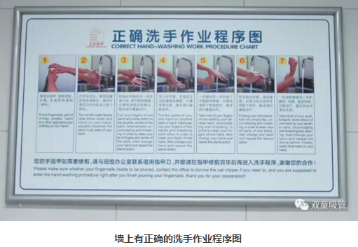 4、整理完衣物后,來到洗手消毒間,進(jìn)行洗手、烘干、消毒。