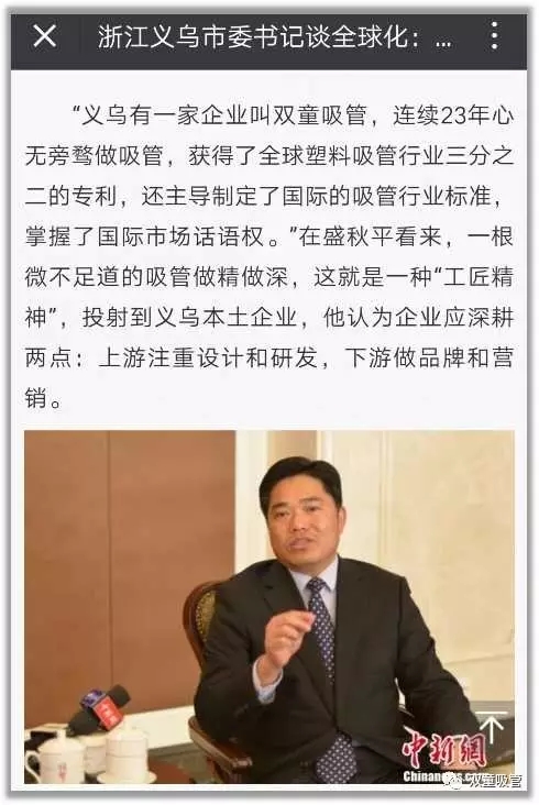春節(jié)期間,義烏市委書記盛秋平在2017義烏幸福湖論壇上接受了中國新聞網(wǎng)記者的采訪,在提到“浙江制造”的話題時點名提到了“雙童”,盛贊“雙童”的工匠精神!其實“雙童”的工匠精神也引起了各大媒體的關注報道,接下來吸管妞就帶大家重溫人民網(wǎng)關注“雙童”工匠精神的新聞,快來看看吧!