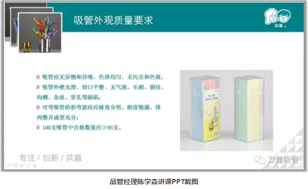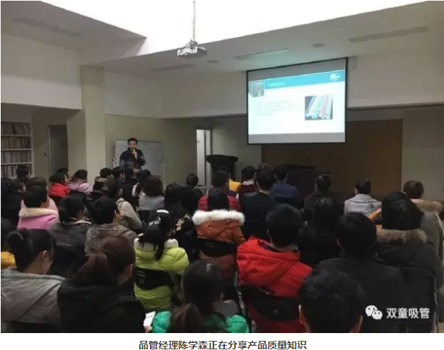 廠長(zhǎng)李秀前再次登臺(tái)和大家分享了《衛(wèi)生秩序保障作業(yè)規(guī)范》,介紹了在進(jìn)入車(chē)間前洗手消毒等一系列的操作步驟,以及進(jìn)入車(chē)間后在工作崗位上的注意事項(xiàng)。品管部經(jīng)理則給新同事講起了產(chǎn)品質(zhì)量的相關(guān)內(nèi)容,從吸管的材質(zhì)、分類(lèi)開(kāi)始講起一直到吸管的各項(xiàng)質(zhì)量要求、衛(wèi)生要求,引導(dǎo)員工們提升質(zhì)量意識(shí)!