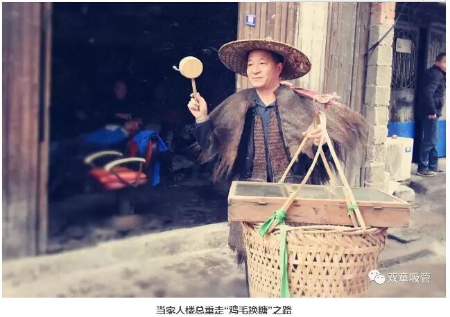 在我很小的時(shí)候,我爸爸就已經(jīng)出去“雞毛換糖”了,后來,兩個(gè)哥哥長(zhǎng)大了也陸續(xù)跟著我的爸爸去“雞毛換糖”。
