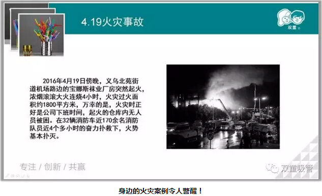 接下來,廠長通過一些我們身邊的案例介紹火災(zāi)的嚴(yán)重性,一幅幅令人警醒的畫面讓員工們由衷的感嘆今后在生產(chǎn)生活方面一定要注意安全!