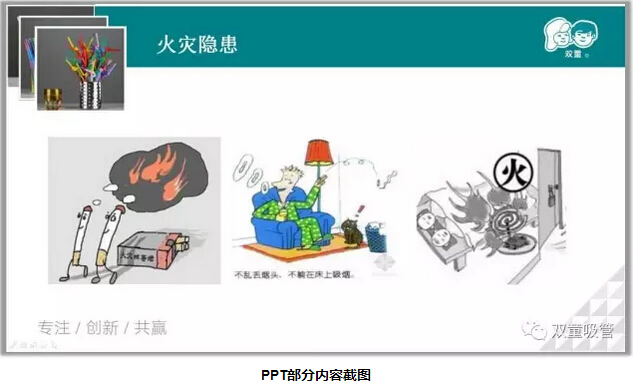 火災(zāi)牌香煙?原來是人們在生活中亂扔煙頭、在被窩吸煙等等行為使得我們的香煙成為了導(dǎo)致火災(zāi)的罪魁禍?zhǔn)?。可還是有很多男同胞離不開香煙呢!廠長的一句“香煙虐我千百遍,我愛香煙如初戀”,可把大家逗樂啦!