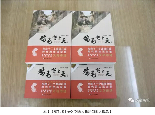 大家一定會發(fā)現(xiàn)書上有個亮點(diǎn),看,《雞毛飛上天》同名小說的封面人物是我們的當(dāng)家人樓總呢!