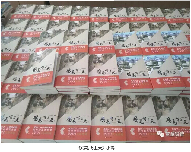 其實(shí),在這背后還有一個小故事!當(dāng)《雞毛飛上天》小說出版在即,作者何賽陽老師卻一直沒有找到滿意的封面,直到有一天,他看到了“雙童”微信平臺發(fā)布的樓總重?fù)u撥浪鼓的文章,眼前一亮,對呀,這不就是他一直苦苦尋找的封面照片嗎!他立即聯(lián)系到當(dāng)家人樓總并闡明用意,樓總也是非常爽快地答應(yīng)了他的請求,也就有了這本小說的精美封面啦!