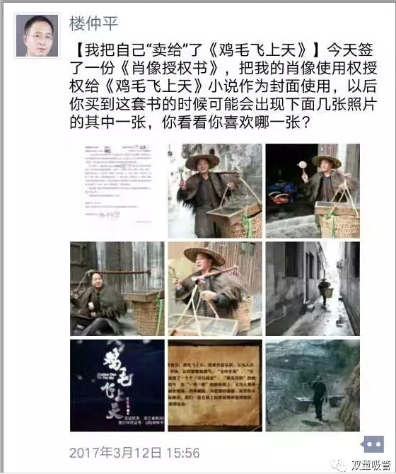 最后獻(xiàn)上大福利:只要轉(zhuǎn)發(fā)此篇微信到朋友圈,并附上“贊!雙童吸管樓仲平成為《雞毛飛上天》小說封面人物!”這句話,截圖發(fā)送到“雙童”微信后臺的前十名粉絲,妞會免費(fèi)贈書給你,包郵哦!