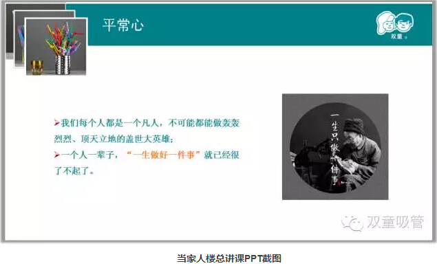 所以,當家人樓總一直告誡大家,做人一定要有平常心。做企業(yè)有時候需要理解“舍得”、懂得“放棄”!很多企業(yè)主的痛苦不是你獲得的太少,而是想要的太多!