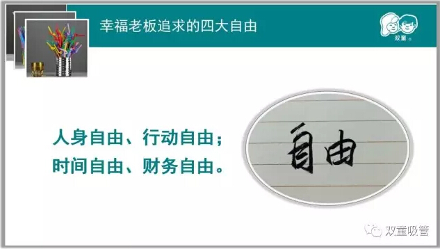 很多企業(yè)主都有這樣的痛點:我很忙!每天要處理各種各樣的關系,每天連番的應酬交際任務,根本沒有時間兼顧家庭,自由更是無從談起!而當家人樓總卻認為一個幸福老板必須要擁有四種“自由”,這話從何說起呢?接下來吸管妞就向大家詳細闡釋一下吧!