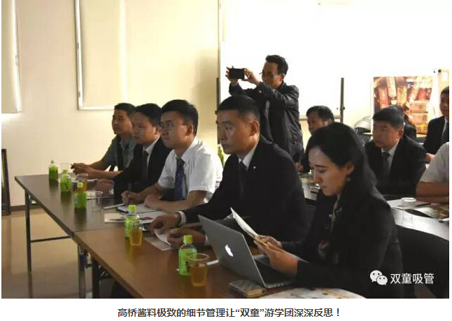 高橋先生也和大家聊到了高橋醬料株式會(huì)社的經(jīng)營(yíng)理念,也就是追求員工和客戶(hù)的幸福感,追求美味和快樂(lè)的食文化。在日本有將近1200多家的醬料公司,高橋醬料目前已經(jīng)躋身前8名。但是值得關(guān)注的是,極少公司能和高橋醬料一樣,堅(jiān)持制造100%的純天然有機(jī)食品,他們用極其認(rèn)真甚至苛刻的態(tài)度對(duì)待自己的產(chǎn)品,追求產(chǎn)品在衛(wèi)生方面和質(zhì)量方面能夠在行業(yè)中脫穎而出!高橋醬料對(duì)產(chǎn)品衛(wèi)生及品質(zhì)的極致追求也讓“雙童”游學(xué)團(tuán)深深反思,為什么我們的產(chǎn)品還會(huì)出現(xiàn)質(zhì)量問(wèn)題?如何讓“雙童吸管”的品質(zhì)進(jìn)一步提升?高橋醬料給我們提供了借鑒意義,是我們學(xué)習(xí)的標(biāo)桿!