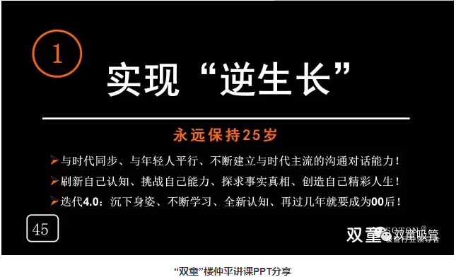未來已來,“雙童”樓仲平在面對這個瞬息萬變的現(xiàn)代信息社會時充滿了緊迫感和進取心,他深刻認知到唯有持續(xù)學習、不斷改變才能緊跟時代發(fā)展,唯有嘗試新的突破,轉(zhuǎn)變自己的思維,永遠將自己定位在25歲,才能完成下一次向零零后的迭代,從而影響團隊并保證“雙童”不被時代所淘汰!