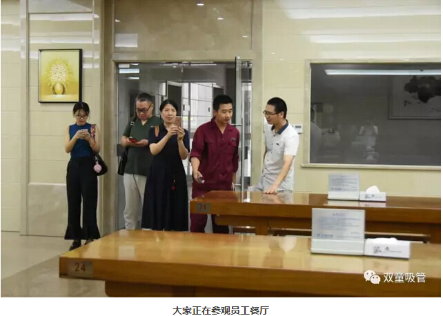 接下來,大家來到了員工餐廳,餐桌上的用餐提示語、墻上的相框、餐桌上的編號(hào)銅牌……隨處可見的優(yōu)質(zhì)細(xì)節(jié)都讓大家稱贊不已!除此之外,員工的餐飲都是三菜一湯的標(biāo)配,員工們使用后的所有碗筷都由食堂阿姨進(jìn)行清洗和消毒。大家在看到如此精細(xì)的就餐環(huán)境和硬件后紛紛表示很羨慕呢!