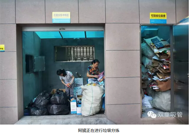 首先,垃圾分類的第一步,就是將“雙童”內部所有的垃圾進行收集: