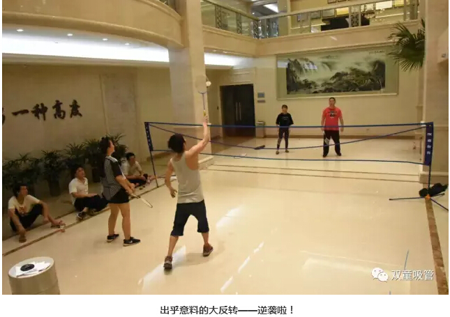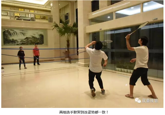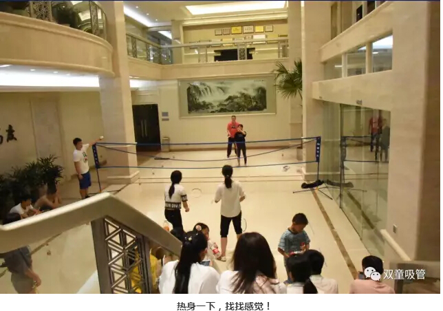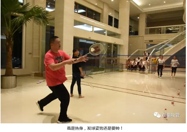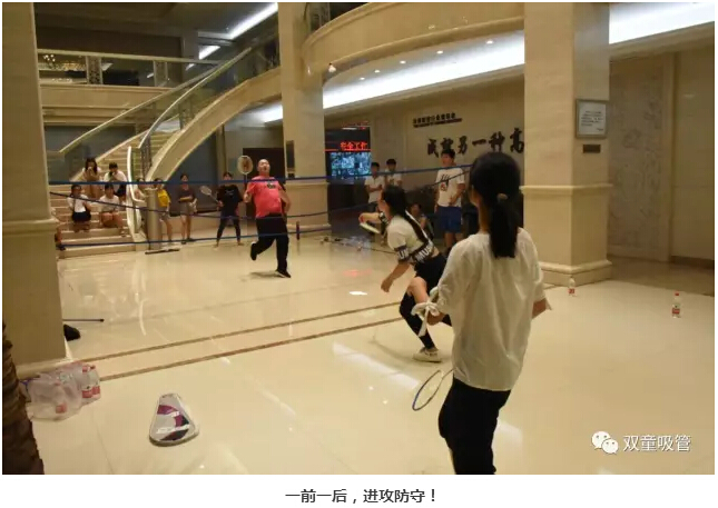 7月18日晚七點(diǎn)半,“雙童”的小伙伴們在行政大廳內(nèi)舉辦了一次精彩的羽毛球賽。要說活動(dòng)現(xiàn)場,那可是十分的激動(dòng)人心呀!炎炎夏日也抵擋不住大家想運(yùn)動(dòng)的心!下面妞就給大家來個(gè)現(xiàn)場直播!