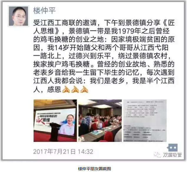 在工商聯(lián)史主席以及財(cái)智名家論壇的余秘書長(zhǎng)簡(jiǎn)短的開場(chǎng)介紹后,“雙童”樓仲平也開始了分享。一開場(chǎng),樓仲平表明自己對(duì)江西景德鎮(zhèn)有著一種特殊的情懷。因?yàn)闃侵倨降耐陼r(shí)期在弋陽(yáng)度過(guò),創(chuàng)業(yè)后在江西景德鎮(zhèn)‘雞毛換糖’,前后在江西呆了十幾年,乃至于現(xiàn)在每次碰到江西人,樓仲平都會(huì)親切地與他打招呼,并主動(dòng)介紹自己也是“半個(gè)江西人”?,F(xiàn)在樓仲平每次受邀到江西分享都覺得是回到了自己的第二故鄉(xiāng),也很感恩能將自己的認(rèn)知分享給江西的創(chuàng)業(yè)者們!