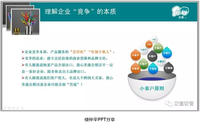 接下來(lái),吸管妞就重點(diǎn)和大家分享當(dāng)天的課程吧!首先,樓仲平分享道:“吸管是世界上最難做的產(chǎn)品,如果在座的創(chuàng)業(yè)者們選擇了這類產(chǎn)品作為創(chuàng)業(yè)起點(diǎn),千萬(wàn)不要抱怨,抱怨是創(chuàng)業(yè)者的毒藥,創(chuàng)業(yè)資金、人才、資源都不是瓶頸,創(chuàng)業(yè)者最大的瓶頸就是抱怨!