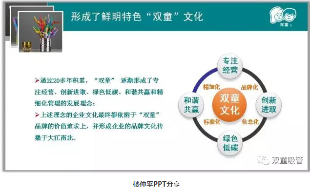 很多人會(huì)很好奇,“雙童”作為一家吸管制造企業(yè),為什么會(huì)吸引大量社會(huì)和媒體關(guān)注呢?樓仲平坦言:這就是我們一直以來塑造差異化亮點(diǎn),并做到“人無我有,人有我先”,用“講故事”的形式把“雙童”品牌傳播到大江南北的結(jié)果!當(dāng)然,這之前有一個(gè)前提:一定要先把企業(yè)做好!