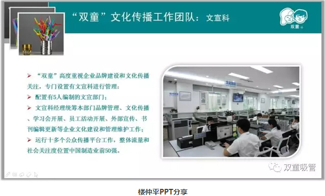 在互聯(lián)網(wǎng)時(shí)代背景下,傳統(tǒng)的廣告營銷和品牌推廣逐漸被新的互聯(lián)網(wǎng)新媒體和自媒體所替代。“雙童”高度重視企業(yè)的自媒體傳播,專門設(shè)置有5人編制的文宣部門,負(fù)責(zé)運(yùn)營微博、微信、官方網(wǎng)站等十幾個(gè)自媒體應(yīng)用平臺,整體流量和社會(huì)關(guān)注度位置中國制造業(yè)前20強(qiáng)!