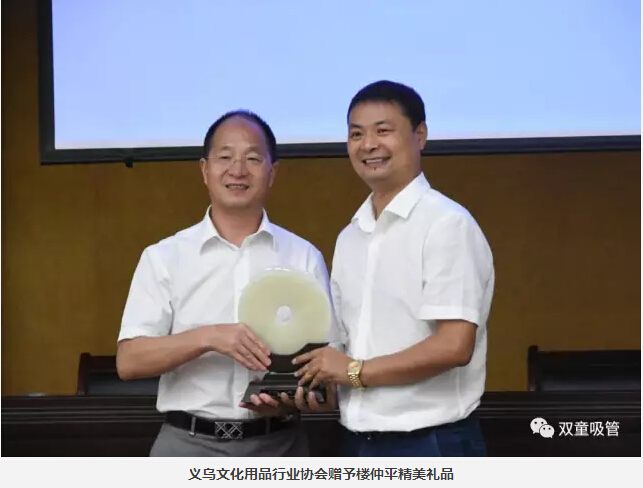 分享到最后,大家對“雙童”這樣的商業(yè)模式、經(jīng)營理念都十分稱贊,直呼:“我們真是來對了,義烏的企業(yè)主們真應(yīng)該來‘雙童’看看,下次也一定會(huì)帶著自己的團(tuán)隊(duì)再來參觀?!弊詈?,義烏市文化用品協(xié)會(huì)黃昌潮會(huì)長也代表協(xié)會(huì)給“雙童”送上了精心準(zhǔn)備的禮品,足以見得有多用心呢!吸管妞也歡迎大家再來“雙童”做客哦!