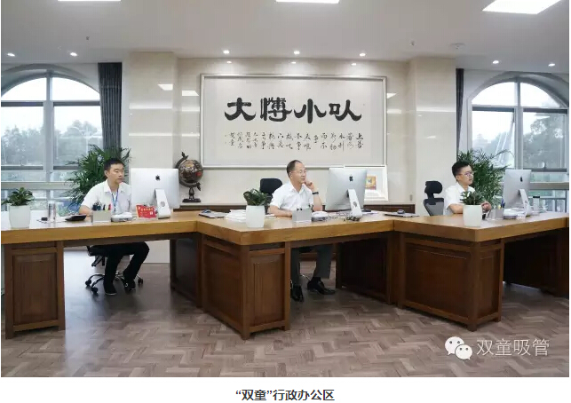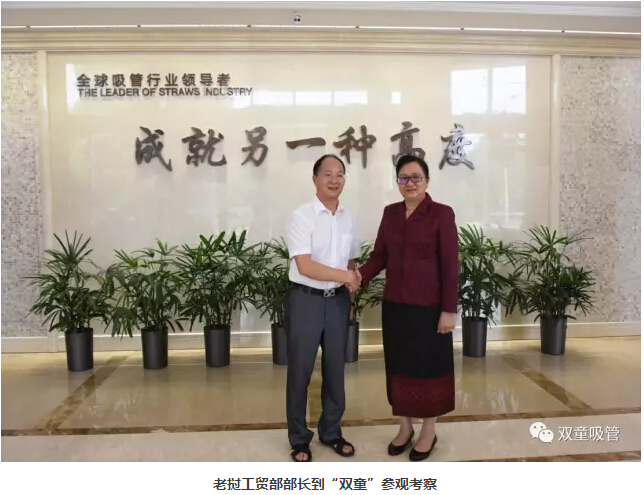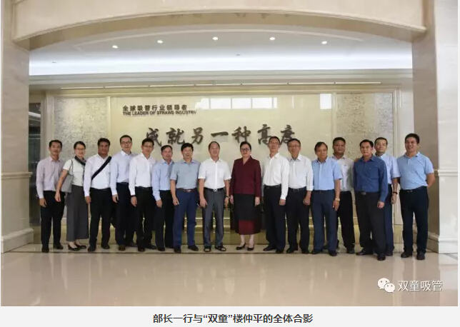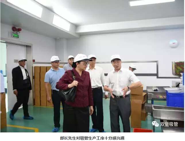 看到行政辦公區(qū)“以小博大”四個大字時,部長先生十分感興趣。樓仲平也分享道:“‘以小博大,成就另一種高度’是‘雙童’企業(yè)文化的體現(xiàn),我們始終堅持這樣的理念,以博大的胸懷將一根吸管做精、做強、做到極致。”部長先生聽后也說道:“我真是太喜歡‘雙童’了!”